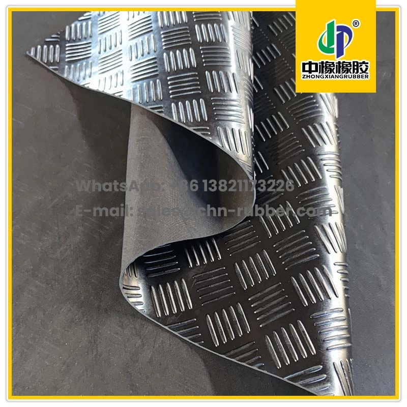 Lençol emborrachado para piso antiderrapante apresenta um design marcante de cinco barras, projetado para oferecer desempenho antiderrapante em áreas molhadas, oleosas ou de alto tráfego. Comumente instalado em corredores industriais, estações de trabalho e interiores de veículos, ele aumenta a estabilidade e a segurança dos pés em superfícies lisas. A Tianjin China Rubber Co., Ltd. fornece lençol emborrachado para piso antiderrapante fabricados com materiais de borracha de alta qualidade. A estrutura da superfície oferece aderência mesmo em condições de baixa tração, enquanto a parte inferior permanece plana para uma instalação segura. Sua flexibilidade o torna adequado tanto para revestimento de piso permanente quanto temporário.